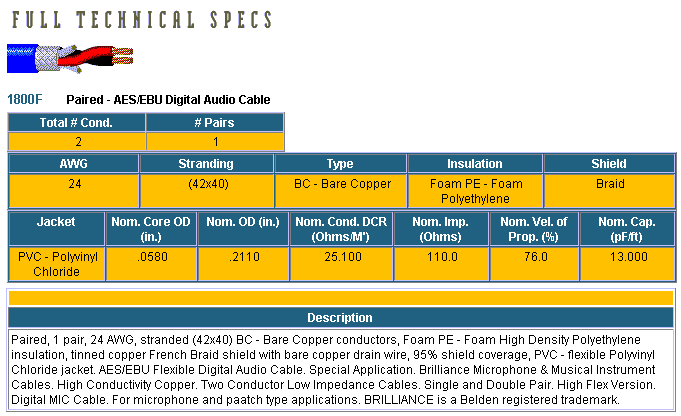 1 PAIR, AES/EBU FLEXIBLE DIGITAL AUDIO CABLE. FOR |