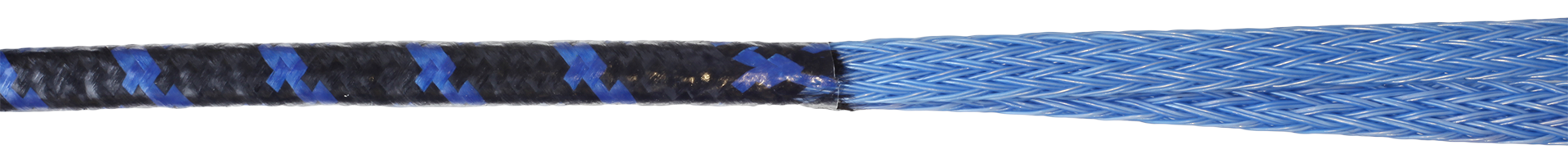 Iconoclast speaker cables begin with Belden's "bonded pair" technology, originally developed for high-precision paired data cables, where pairs are closely spaced with high dimensional precision. The photo below shows a typical bonded-pair Ethernet cable, with the jacket stripped and the blue pair straightened out. Here, we take those pairs, use a PTFE (Teflon) dielectric rather than the normal polyethylene, and use them in a completely different application: analog, not digital, and parallel rather than balanced. These pairs are woven tightly together, allowing a large number of discrete conductors to be used in parallel in a compact form.