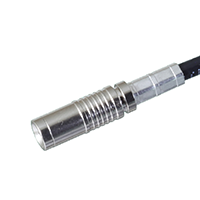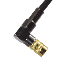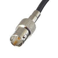 Our standard connector for conventional (up to 6G) SDI cables is the Canare crimp BNC (see picture above); on the 12G versions we use Belden BNCs, which in some cases will be the one-piece compression type (shown below) and in other cases may be the three-piece crimp type. We also offer Canare DIN 1.0/2.3 plugs as an option on the Belden 1505A, 4505R, 1855A, 4855R, and 1505F, White Sands right-angle DIN 1.0/2.3 plugs on the 1855A and 4855R, and Amphenol female BNCs on the 1855A and 4855R. The Canare DIN plugs are our favorite DINs because they have a spring-loaded retracting collar which makes it particularly easy to be sure that they're solidly engaged in the jack, but also makes it easy to remove them -- simply pulling on the outer shell of the connector retracts the collar, releasing the hold on the jack. The White Sands DIN plugs, with their right-angle configuration, are useful in situations -- as on some camera bodies -- where having the cable emerge straight out from the jack is inconvenient. The female BNC, of course, is convenient if you're coupling a short adapter cable to a longer SDI cable, as in many small camera setups.